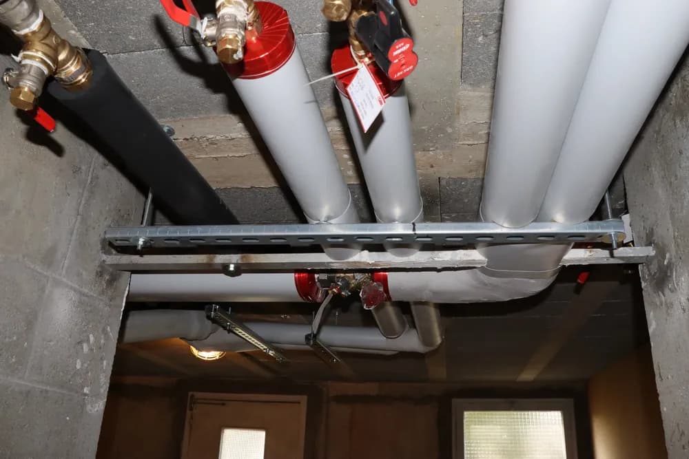 Calorifuge effectué avec de la laine de roche ASTRATHERM 054STU de marque AUSTROFLEX et protection PVC de classe 3 selon la norme NF EN 12 828+A1:2014